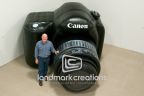 Giant, inflatable product replicas help retail stores, like Camera-Stop, draw attention to new product lines and increase sales. Customers will even line up to get their picture taken with this massive-sized product.