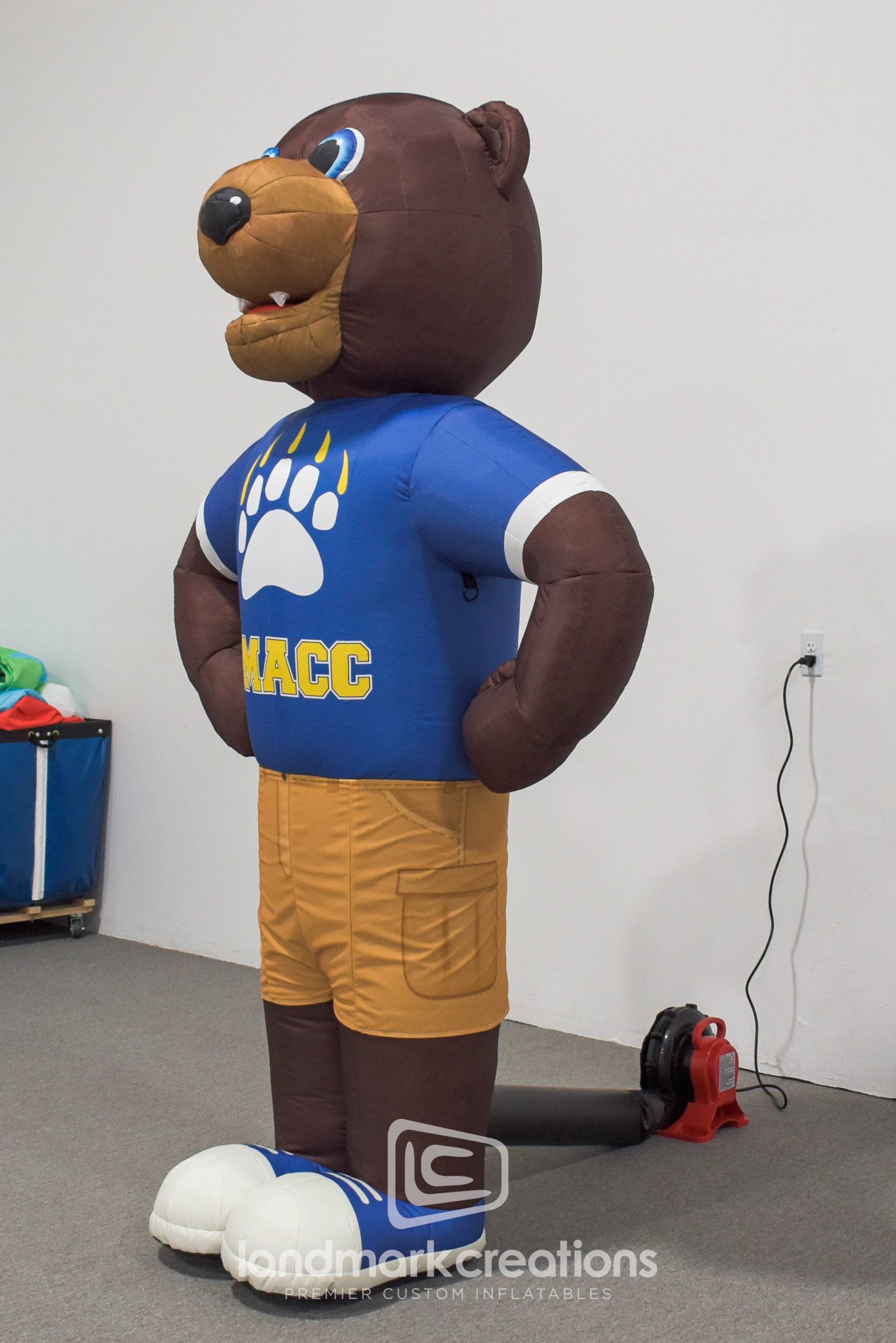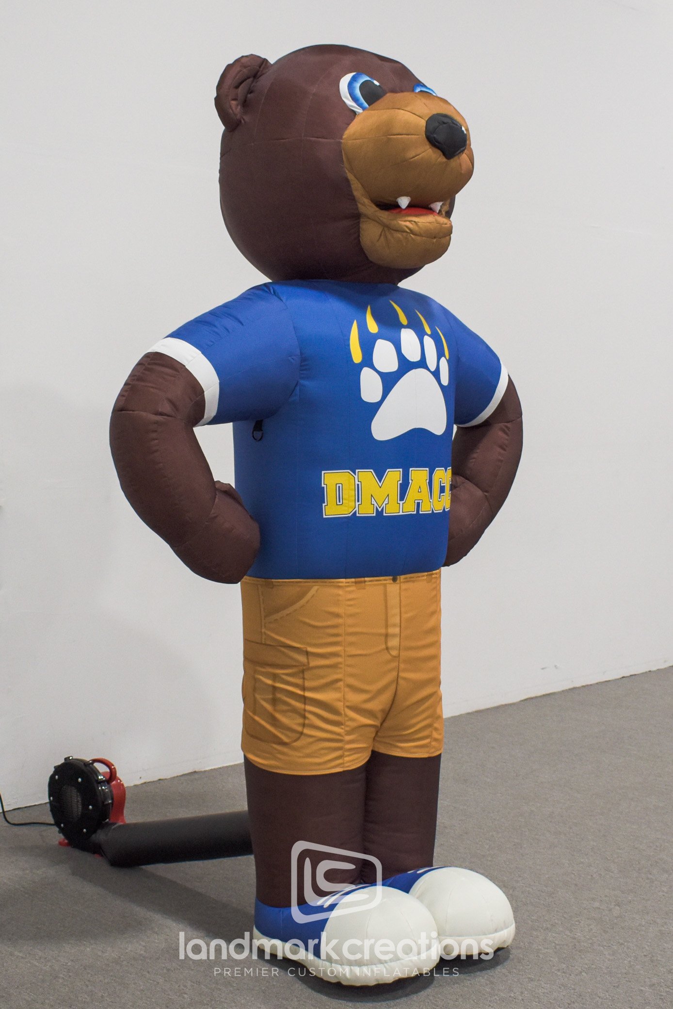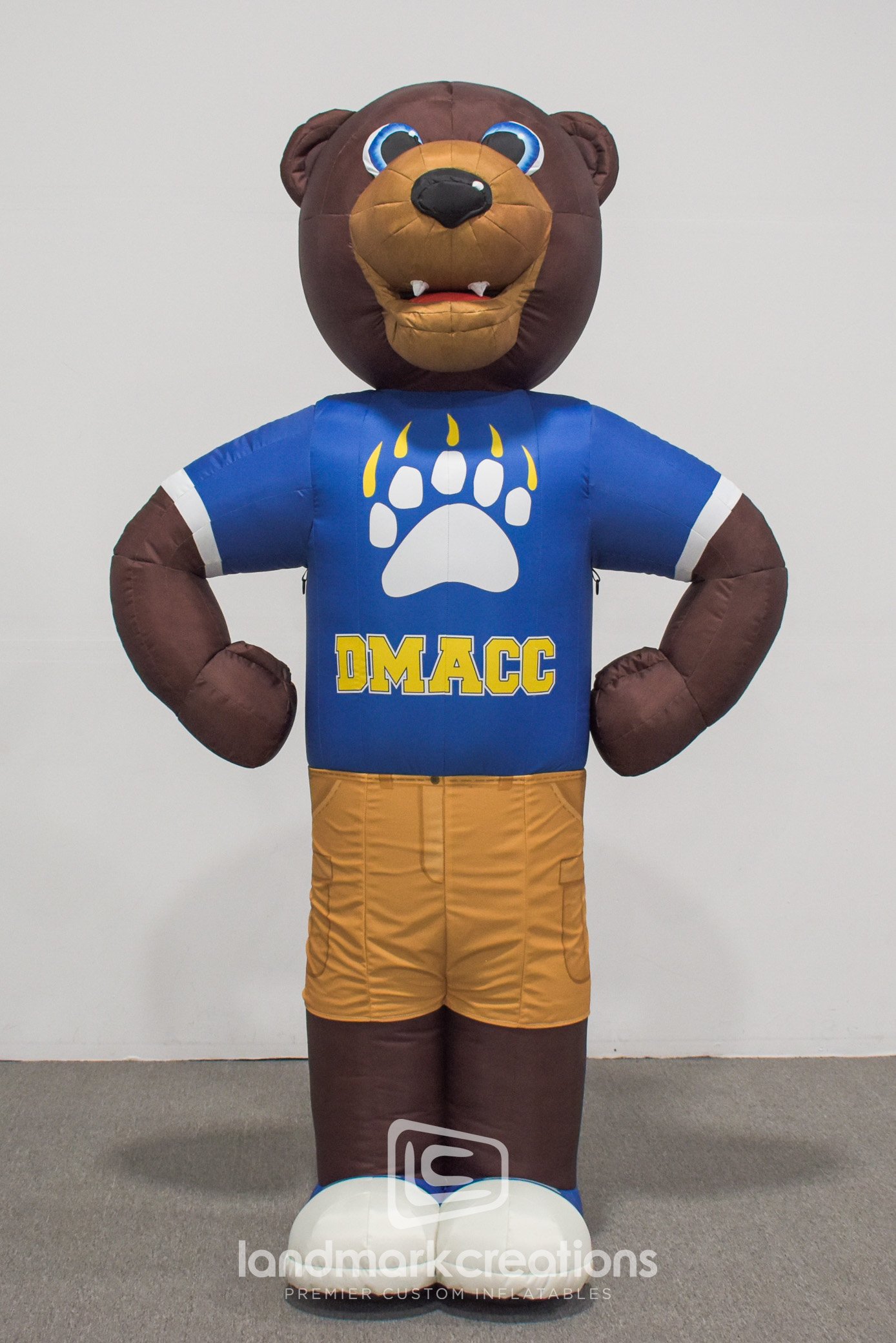 Des Moines Area Community College DMACC created an inflatable version of their beloved DMACC bear mascot to get attention an attract visitors to their booth at events like the Iowa State Fair. Inflatable mascots can be made in any shape, size and color scheme, plus they pack small, so they're easy to transport between events.