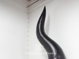 As part of ‘The Black Lords’, a public art installation by artist Desi Santiago, this inflatable dog head sculpture is one part of the larger art piece that was placed atop Lords Hotel in South Beach. The final product will transform the hotel into a massive dog named Gypsy.