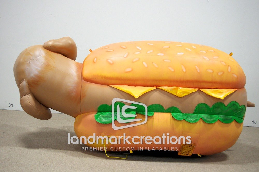 National non-profit animal advocacy organization, Mercy For Animals, created a giant inflatable puppy placed inside of a hot dog bun to protest against the abuse of farm animals and to encourage consumers to adopt a vegan diet.