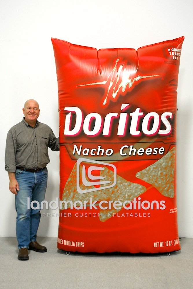 Frito-Lay brand, Doritos, turned their classic and recognizable chip bag into a 8-foot-tall inflatable replica to attract attention at special events and mobile marketing tours.