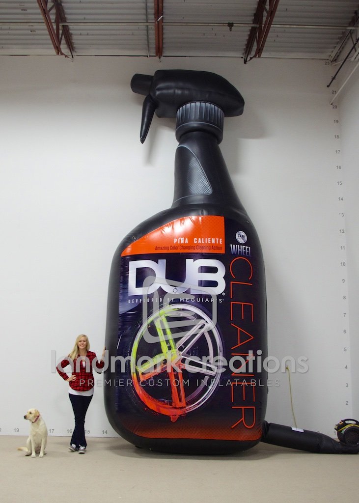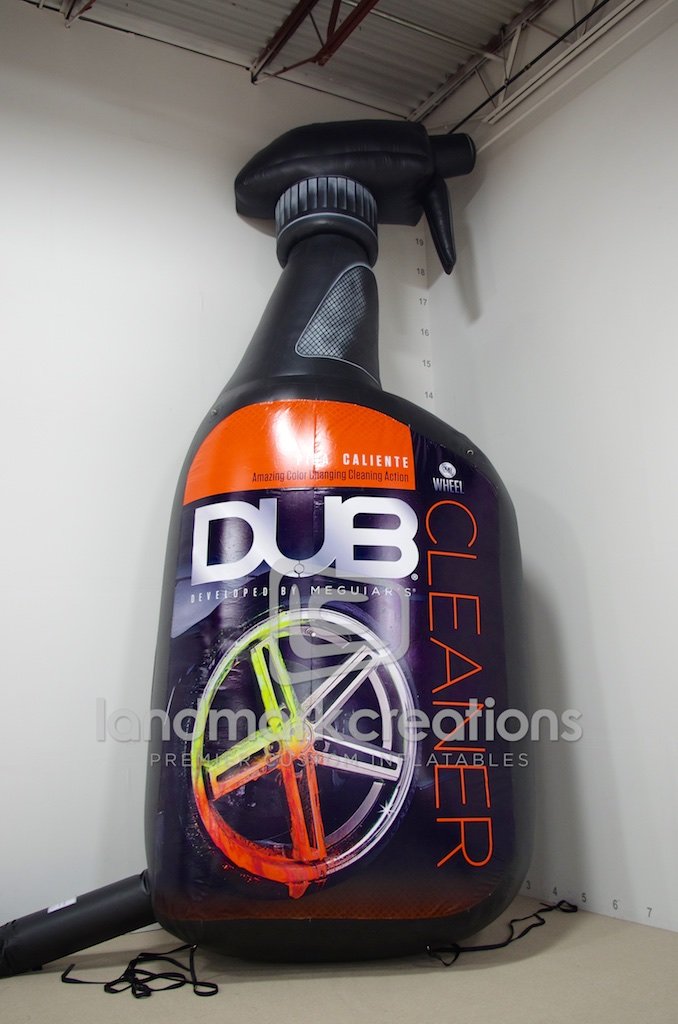 Meguiar's promotes their DUB Wheel Cleaner product with the help of this 20-foot-tall inflatable replica. Displayed outdoors at a variety of events, including car shows, the inflatable creates buzz and attracts attention.