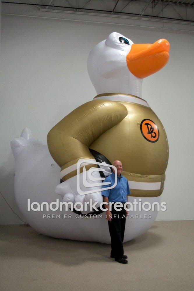 Inflatable stage props add unique, visual impact and fun to any event! This giant inflatable duck, named “Duck Sauce”, is easy to set up, transport, and store for multiple use at various marketing and performance events.