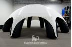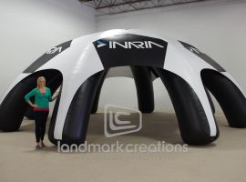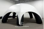This custom inflatable AirTent is used as a shelter for participants and guests at Energy City Race Events. The inflatable tent uses a white cover material to deflect the sun's heat, and includes mutliple points of attachment for event and sponsorship banners.