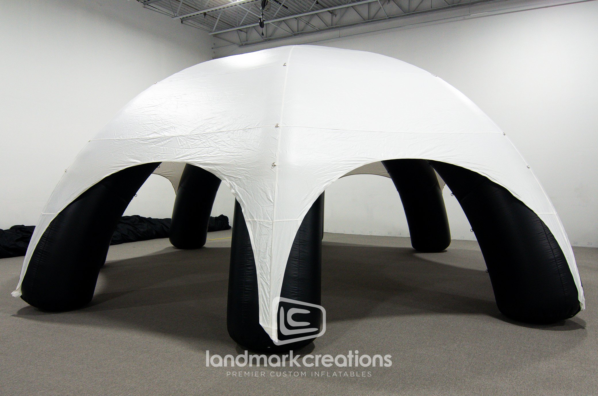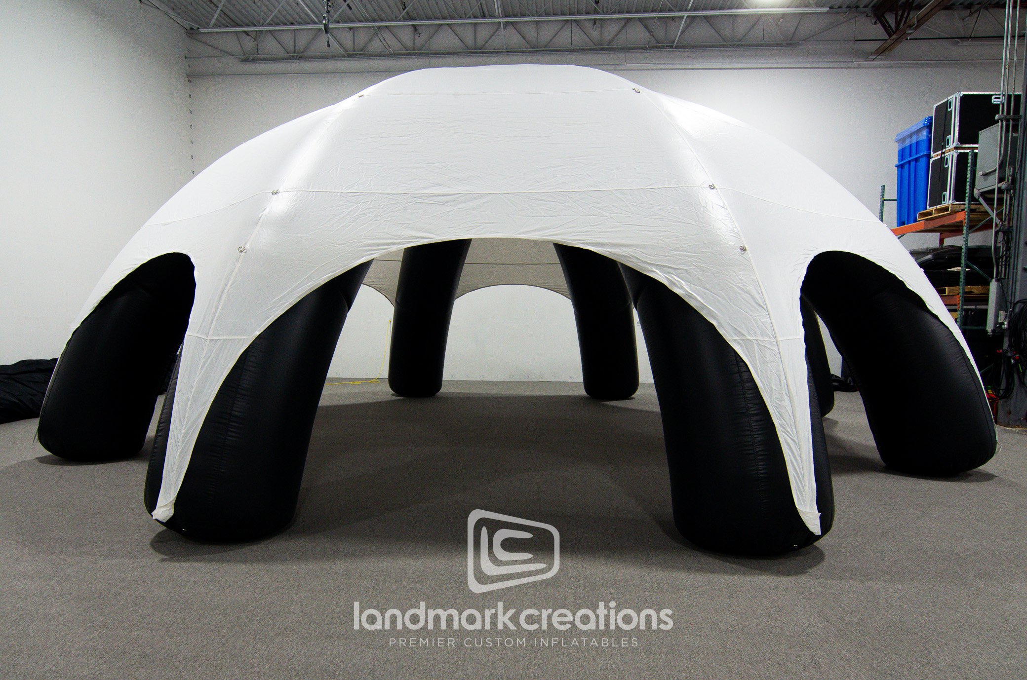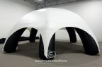 This custom inflatable AirTent is used as a shelter for participants and guests at Energy City Race Events. The inflatable tent uses a white cover material to deflect the sun's heat, and includes mutliple points of attachment for event and sponsorship banners.