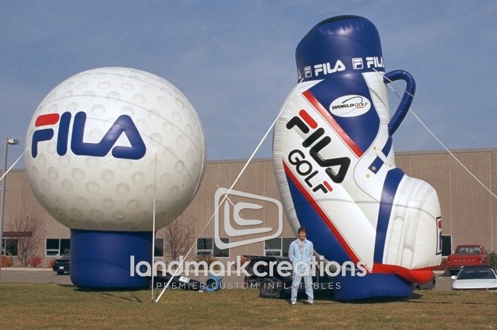 Sporting goods manufacturer Fila used this giant inflatable golf bag replica to promote brand awareness during Fila Challenge tournaments on golf courses around the country.