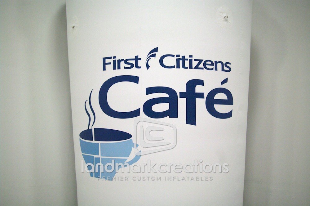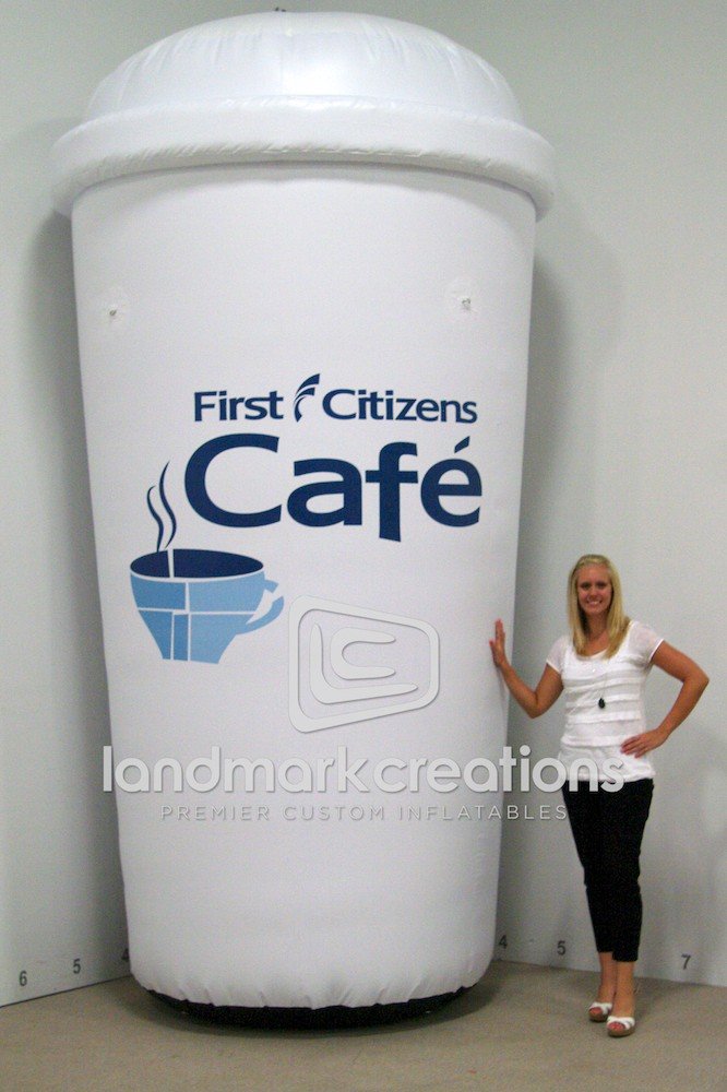 This giant coffee cup replica was used on the rooftop to help First Citizens bank announce the grand opening of their new coffee shop. Taking a page out of ING bank's playbook, First Citizens transformed their 143-year-old building into a space where the public can drink coffee, use free wifi and get financial advice. Brilliant!