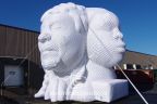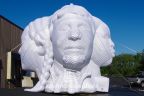 Chicago-based arts collective Floating Museum displayed this spectacular four-faced bust of the city’s oft-overlooked founders, its indigenous peoples and people of color, along the CTA Green Line in the summer and fall of 2019. The faces portray the first non-native man to settle in what would become Chicago, the French Hatian Jean Baptiste Pointe Du Sable; his wife, Potawatomi tribe member Kitihawa; former Chicago mayor Harold Washington; and the face of a child.