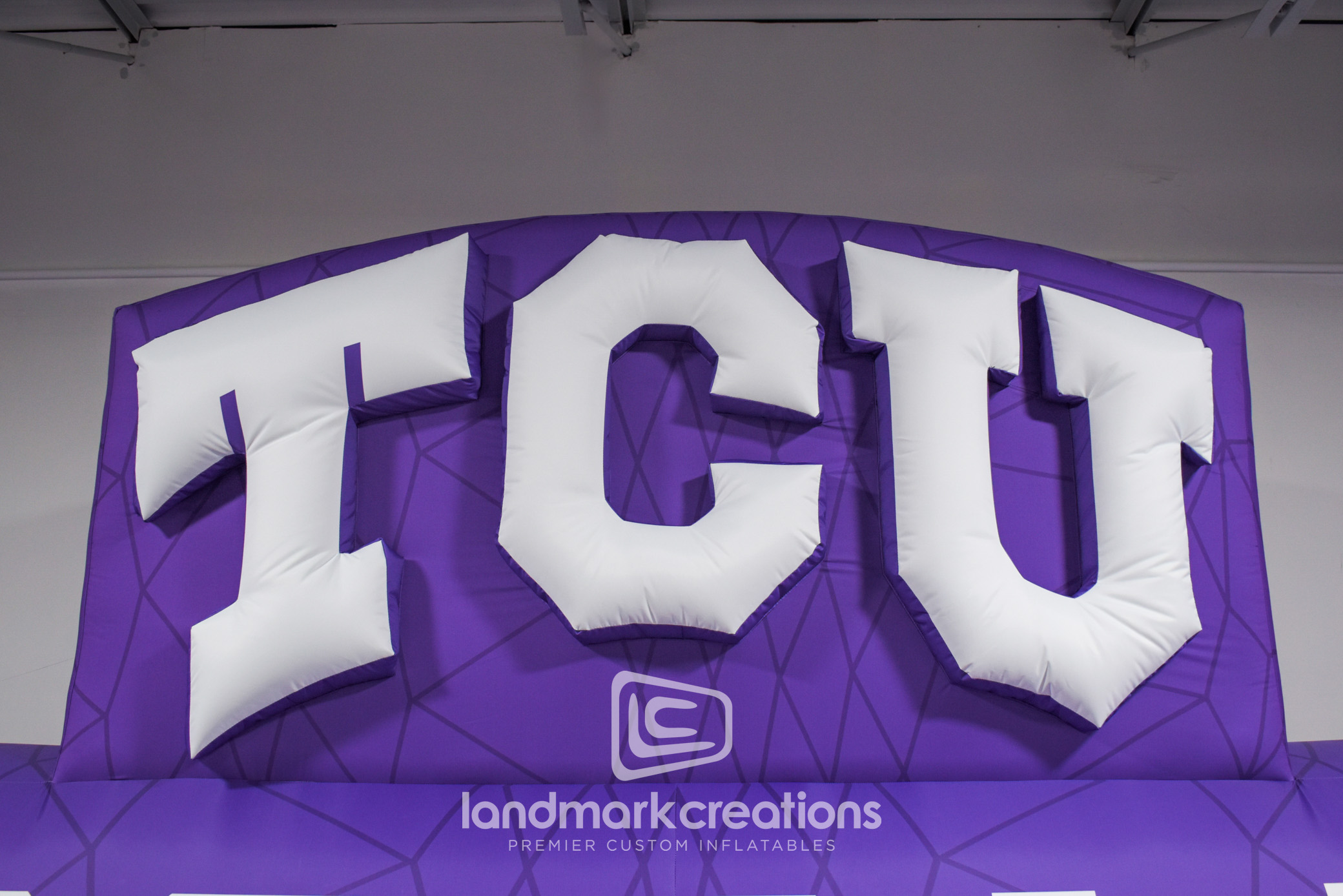 The Frog Alley Arch, a custom inflatable designed for Texas Christian University's (TCU) athletic events, creates a bold and engaging entrance for fans and participants. Standing 19 feet tall and 28 feet wide, this double-sided arch features striking 3D TCU logos and mascots on each leg, making it the perfect centerpiece for sporting events. Developed in collaboration with ProPac Agency, this inflatable arch showcases how branded entrances can amplify school spirit and elevate game day experiences.