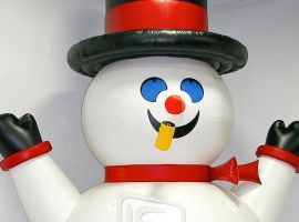 Holiday inflatables, like this giant snowman, bring children's favorite characters to life. Give shoppers a photo opp and create local buzz for your promotions by placing a giant holiday character outside or in-store.