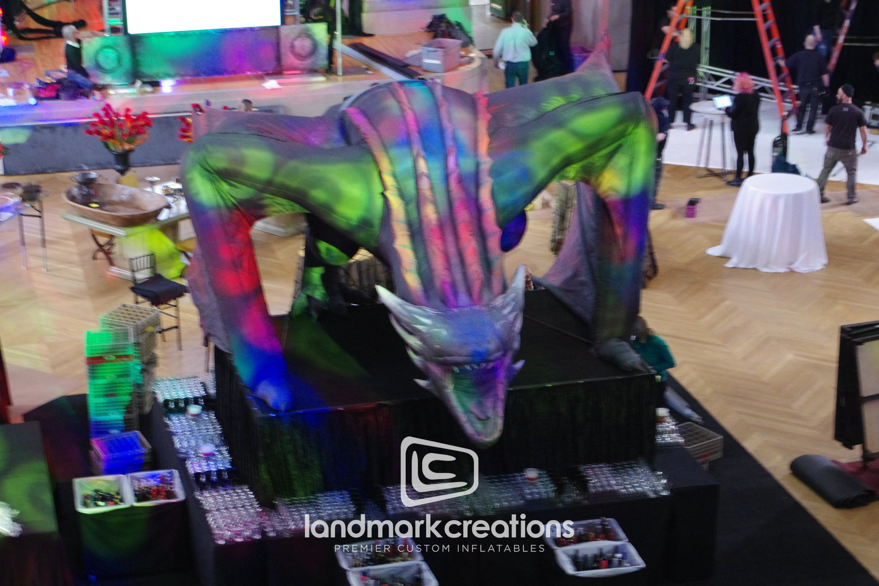 Celadon Event Design immersed corporate event guests in the world of Game of Thrones with this 15 foot giant inflatable dragon as a centerpiece. Creating a giant, thematic display with realistic detail is a surefire way to have guests talking about your event for ages to come. And what an incredible photo op!