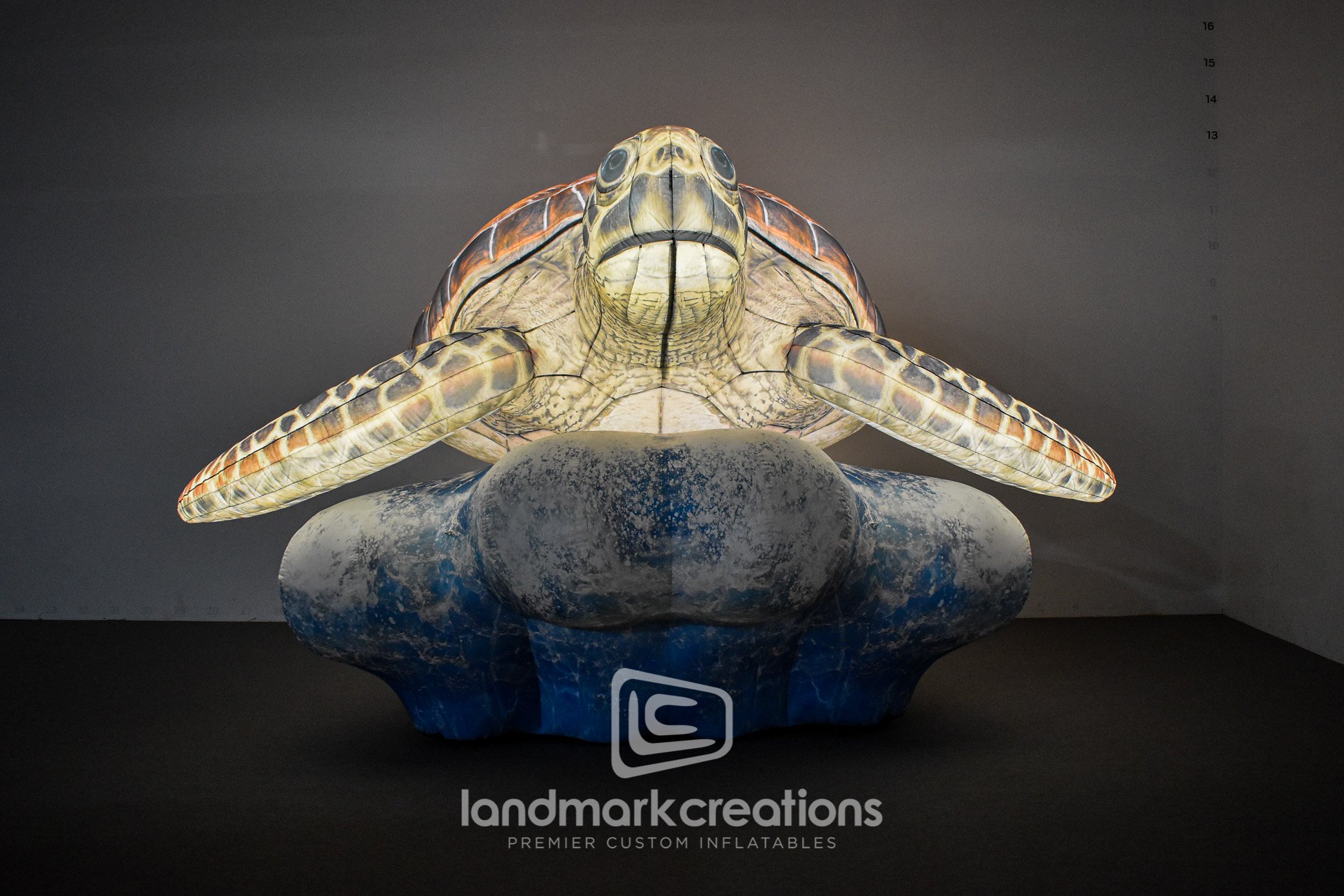 The realistic detail of this giant sea turtle's scales, shell, and wave make it a truly gorgeous display. Featured in the original line up of the Minnesota Zoo's first "Nature Illuminated" exhibit, this sea turtle replica serves as an ambassador for endangered species in the marine biome.