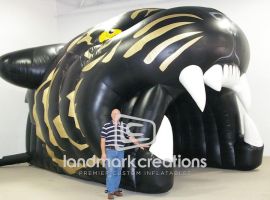 The Grambling State University Tigers get the crowd cheering when they storm through their inflatable tunnel before games.