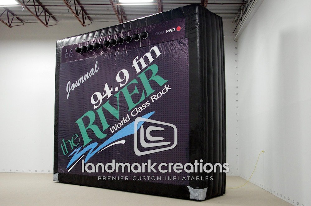 This 17-foot-tall amp replica doubles as a giant billboard for radio station 94.9 fm The River at station remotes and local concerts. Custom inflatables are a great way to start conversations and promote a classic rock station in the community.