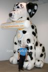 Happy Paws Pet Resort in Orlando connects with pet-lovers by inflating their giant puppy. Their giant inflatable Dalmatian, holding a newspaper for an added message area, advertises their establishment.