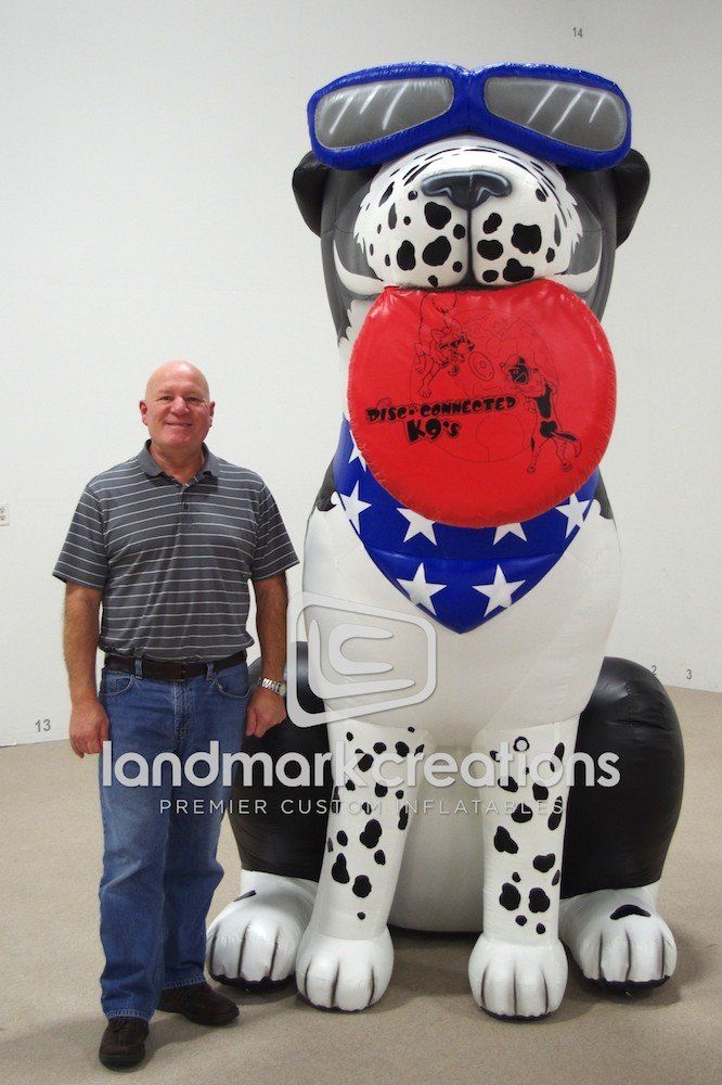 Frisbee dog entertainment team, Disc-Connected K9's, inflate Harley to attract attention to their performance areas. The giant inflatable dog character is also used as a fun photo opportunity for kids and families!