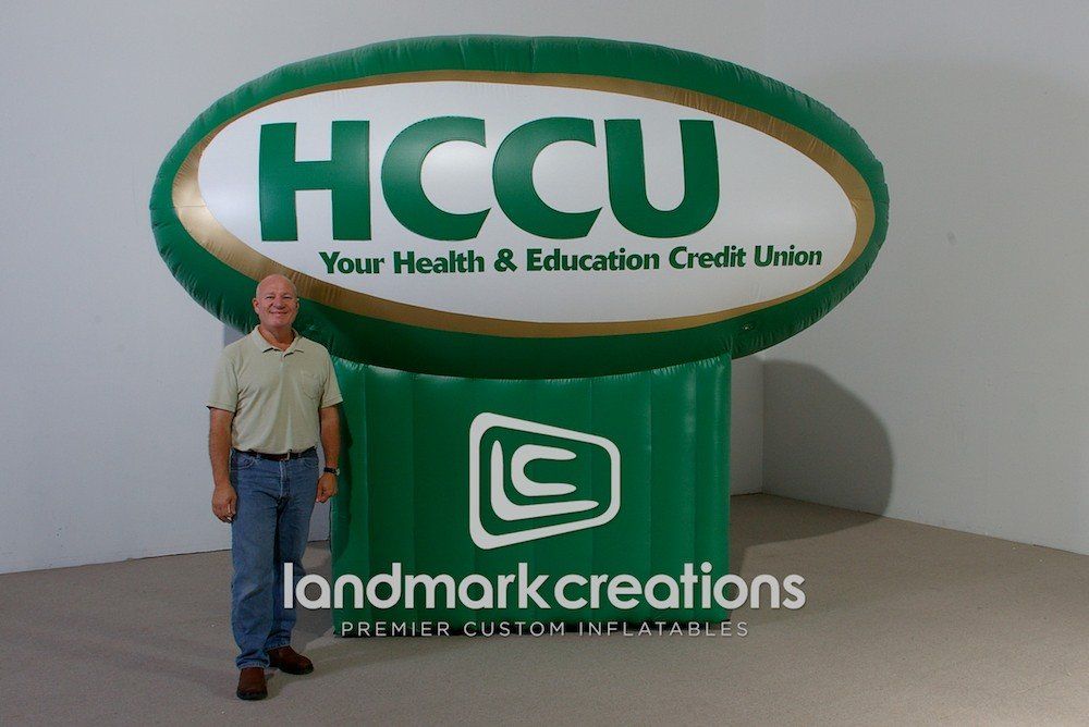 HCCU attracts attention and promotes their credit union services at community events and at branch locations with this inflatable logo.
