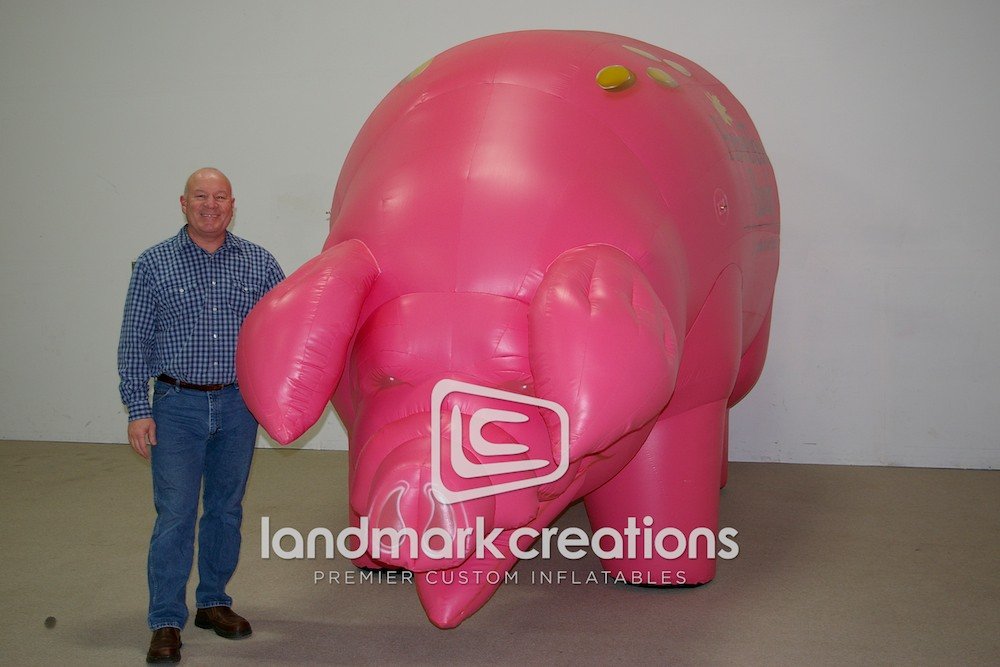 Need a way to get more attention at promotional events? Create an inflatable mascot like this giant pig for HomeTown Bank.