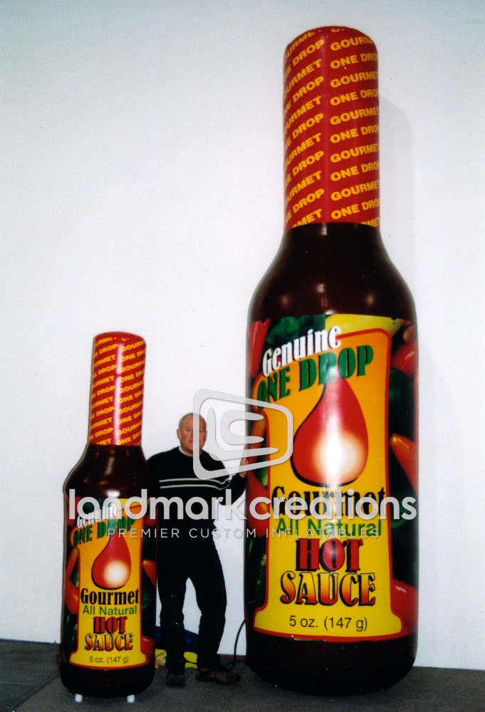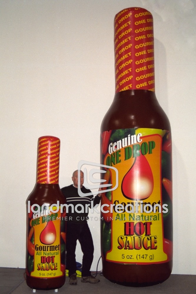 These two are quite the pair. At 7 and 14 feet, respectively, this duo of inflatable One Drop Hot Sauce bottles are the perfect advertising team.