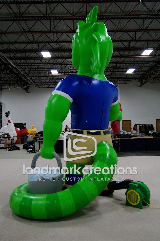 Giant, inflatable mascots are personable and allow customers to interact with your brand. A fun, friendly mascot, like this giant iguana is a perfect visual for retail promotions!
