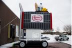 Drug store giant Jewel Osco drew attention to their location and featured product brands by placing a giant inflatable shopping cart with items on the rooftop of their Illinois headquarters.