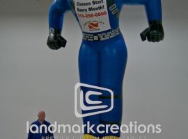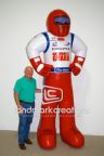 The National Guard uses their inflatable race car driver mascot complete with sponsorship on his driving jacket at racing events! Race car fans love taking pictures with the inflatable driver.