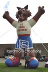 Ka-Boomers Fireworks, located in Nebraska, uses their inflatable Lobo Louie mascot to advertise their half off fireworks sale.