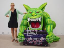 Kinetik Audio attracts attention to their trade show booth with the help of this giant inflatable gargoyle mascot.