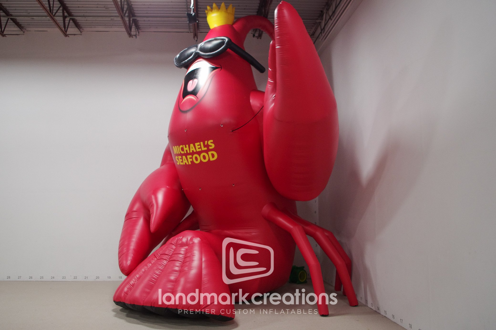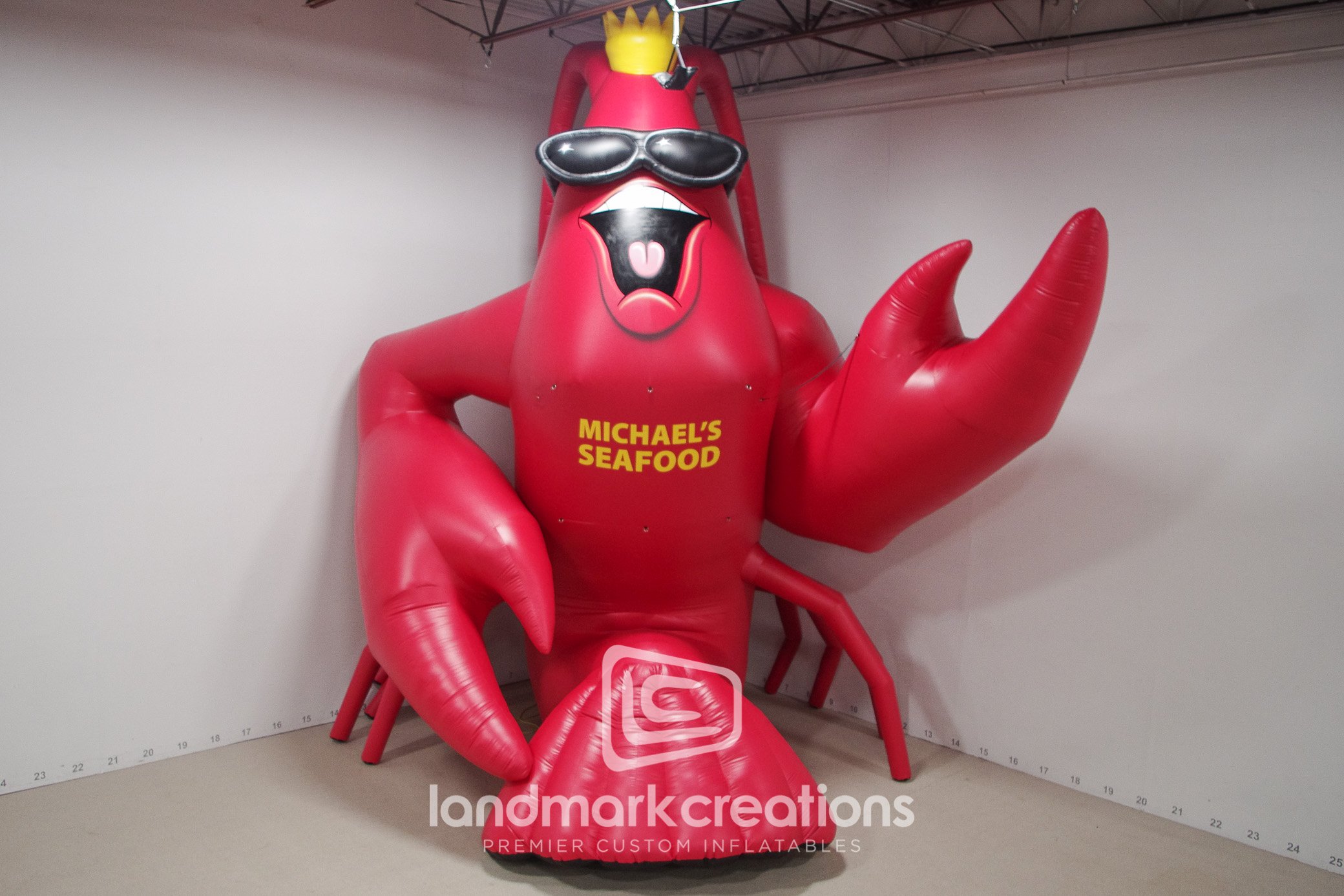Michael’s Seafood in North Carolina inflates their massive King Crawfish for special retail events and promotions. Standing 20 feet tall, the giant inflatable crawfish instantly gets people’s attention.