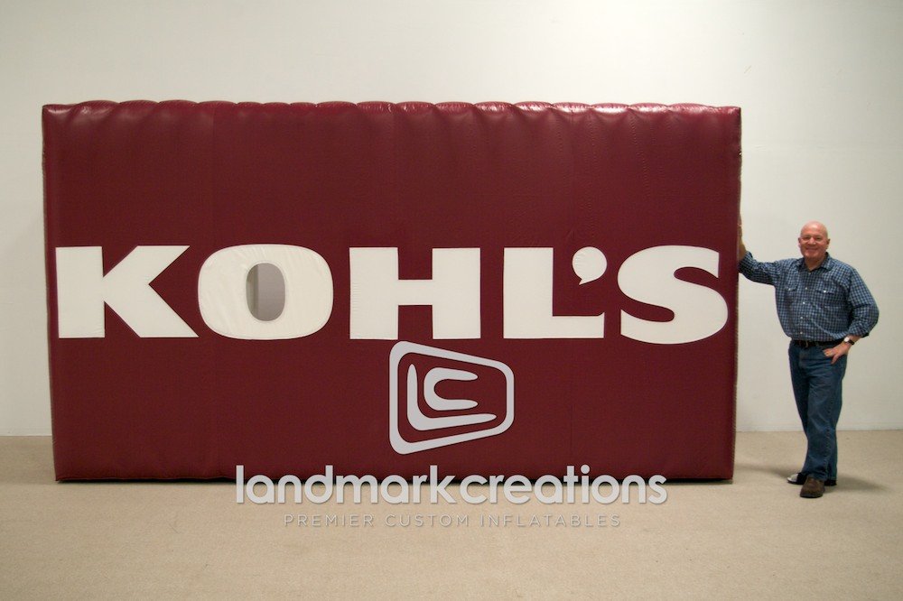 Kohl's Department Stores shows its support of community events with this custom inflatable soccer wall. Landmark Creations was commissioned to build the inflatable, which was used at a youth soccer tournament.