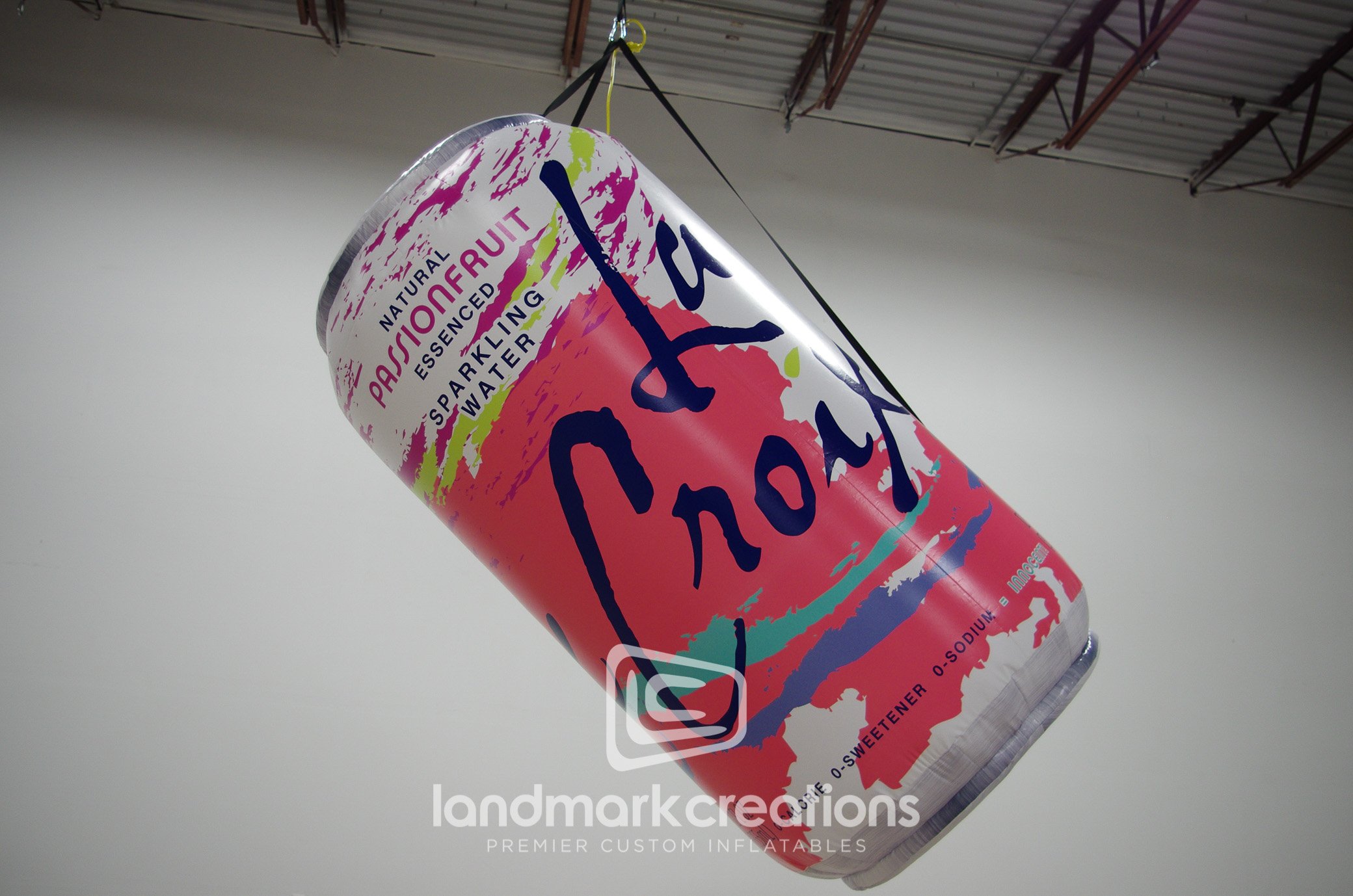 There are few cans as instantly recognizable as that fizzy, fruity favorite loved by hipsters and homemakers alike, LaCroix. So when Nationwide Displays were tasked with giving their trade show booth a facelift, they decided to use that to their advantage, by hanging giant inflatable replicas of the cans above the booth! The cans are instant eye-catchers, and the internal electric blowers wired into the ceiling mean guests don’t have to deal with cords or excessive noise.
