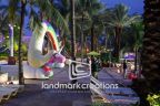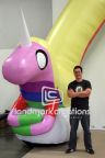 As part of their 2012 Dive-In Movie Promotion, Cartoon Network created a giant inflatable arch display shaped as Adventure Time's Lady Rainicorn and placed it at the entrance of the pool area at The Atlantis Resort.