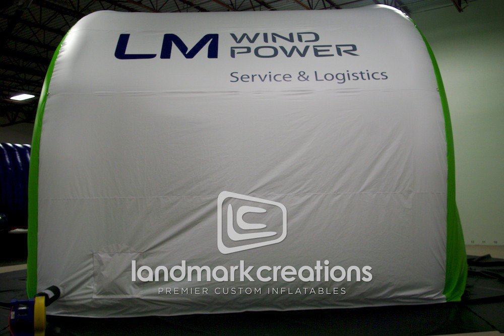 LM Wind Power Service & Logistics, a leading supplier to the wind turbine industry, built trust with customers through face-to-face marketing at events using this 17-foot custom inflatable q-hut.