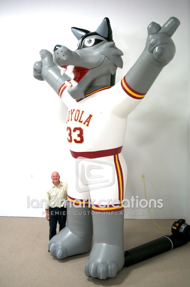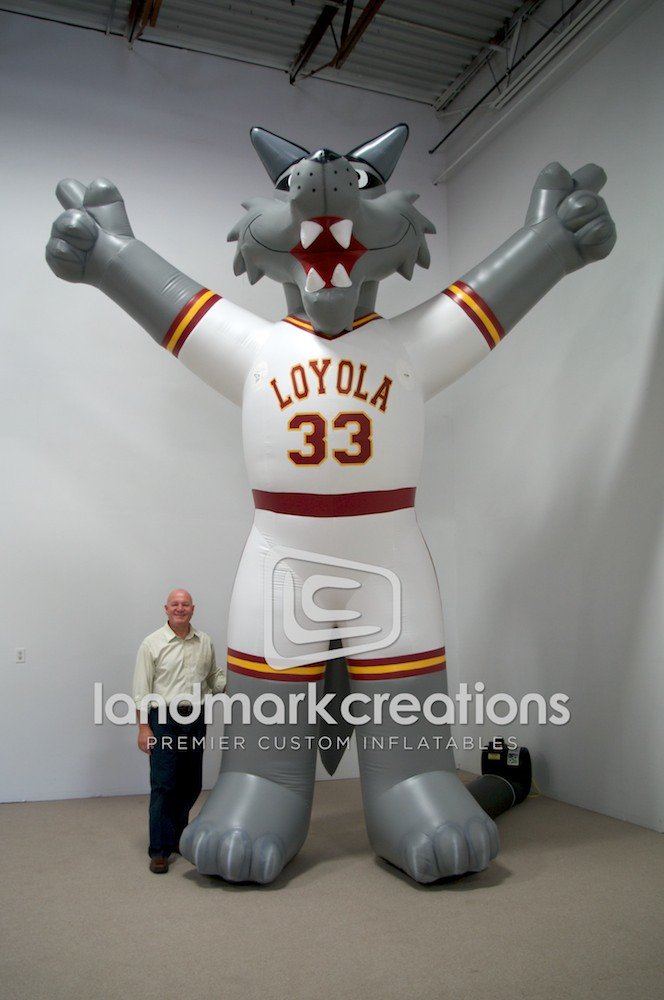 Looking for a way to drive crowds to your sporting events? Loyola University used this inflatable mascot to promote their college sports teams which create crowds and press coverage.