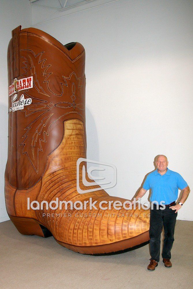 Boot Barn uses their giant, Lucchese cowboy boot inflatable outside their retail location to draw in foot traffic. Crowds are drawn to its size and authentic shape.