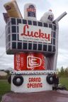 Grocery store marketing is not about defining a basic need: It's about communicating that your store caters to your customers' wants. Lucky uses their massive inflatable grocery cart replica to attract attention.