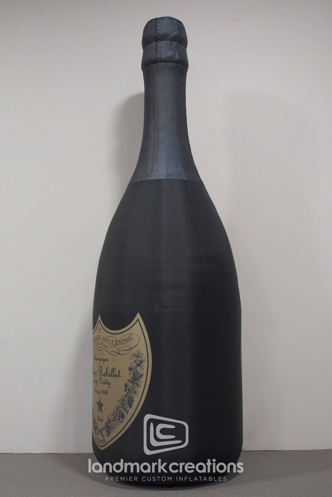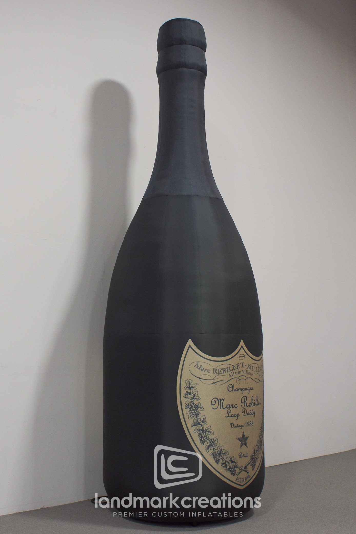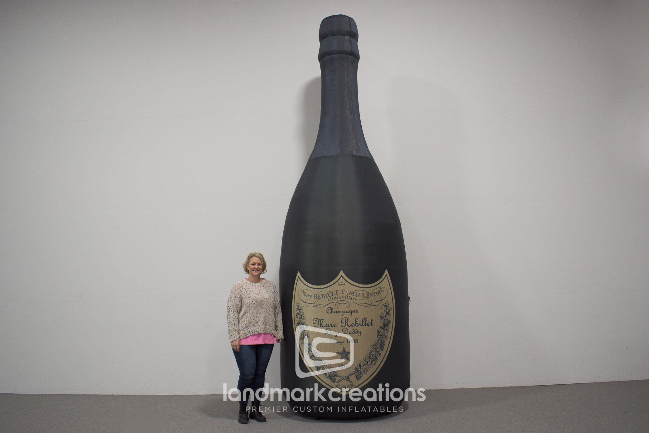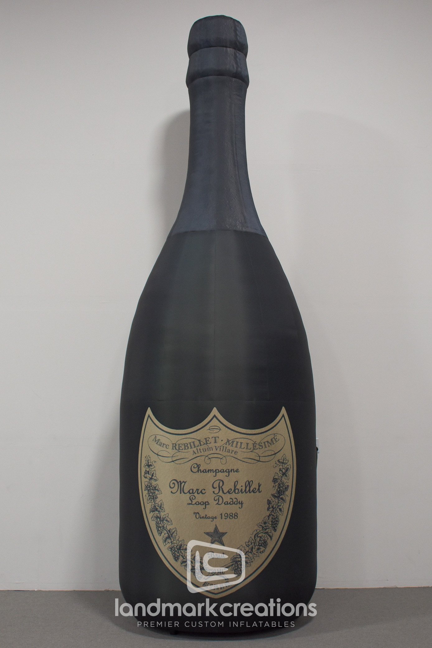 Marc Rebillet's toasts in the New Year at The Factory in Dallas, TX with a giant inflatable champagne bottle replica. Performer Marc Rebillet is known for regularly using champagne bottles as props in his performances, so what better visual to ring in the new year than a giant, fifteen-foot tall champagne bottle? Custom inflatables work well as large stage pieces because they're easy to set up and they pack small for easy transport between shows.