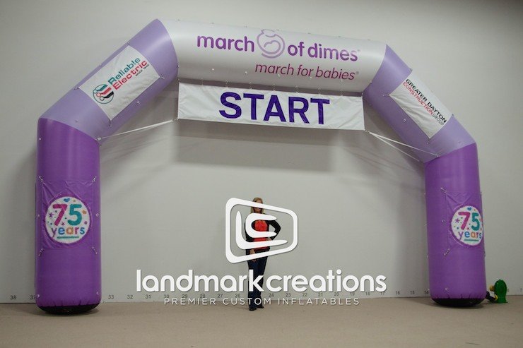 March for Babies, a special fundraiser hosted by The March of Dimes, used their custom inflatable arch to celebrate 75 years of improving the health of babies. The inflatable archway serves as a memorable starting line and a fun photo opportunity at March of Dimes fundraising events throughout America.