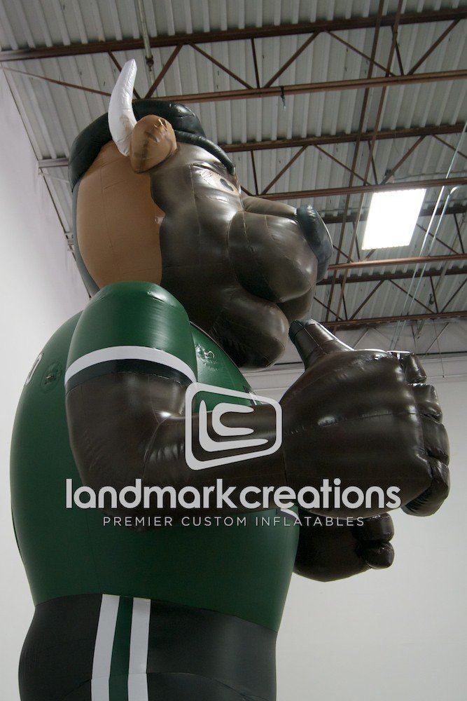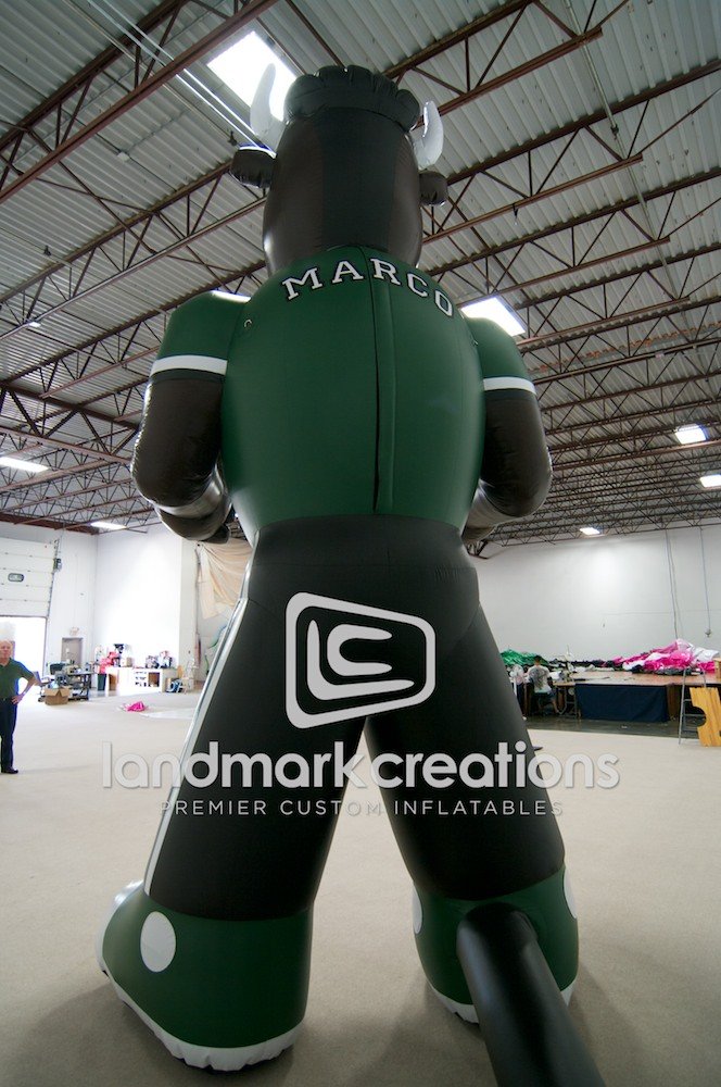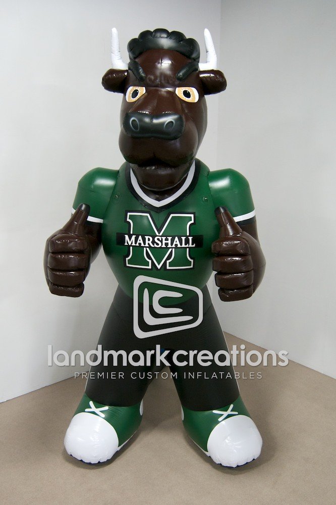 Designed for the Marshall University Alumni Association, this custom inflatable mascot, Macro the buffalo, got fans wild at sporting events