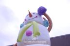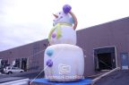 Looking for a giant visual for your winter holiday event or promotion? This giant inflatable snowman made of toasted marshmallows, complete with jellybean buttons and earmuffs is just the thing. Inflatables are perfect for festivals and events because they're easy to set up, store, and transport between locations.