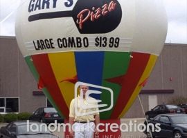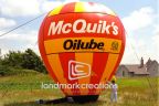 McQuik's Oilube uses their yellow and red branded color scheme on a giant custom, hot air shape at retail locations to spark interest during special automotive promotions.