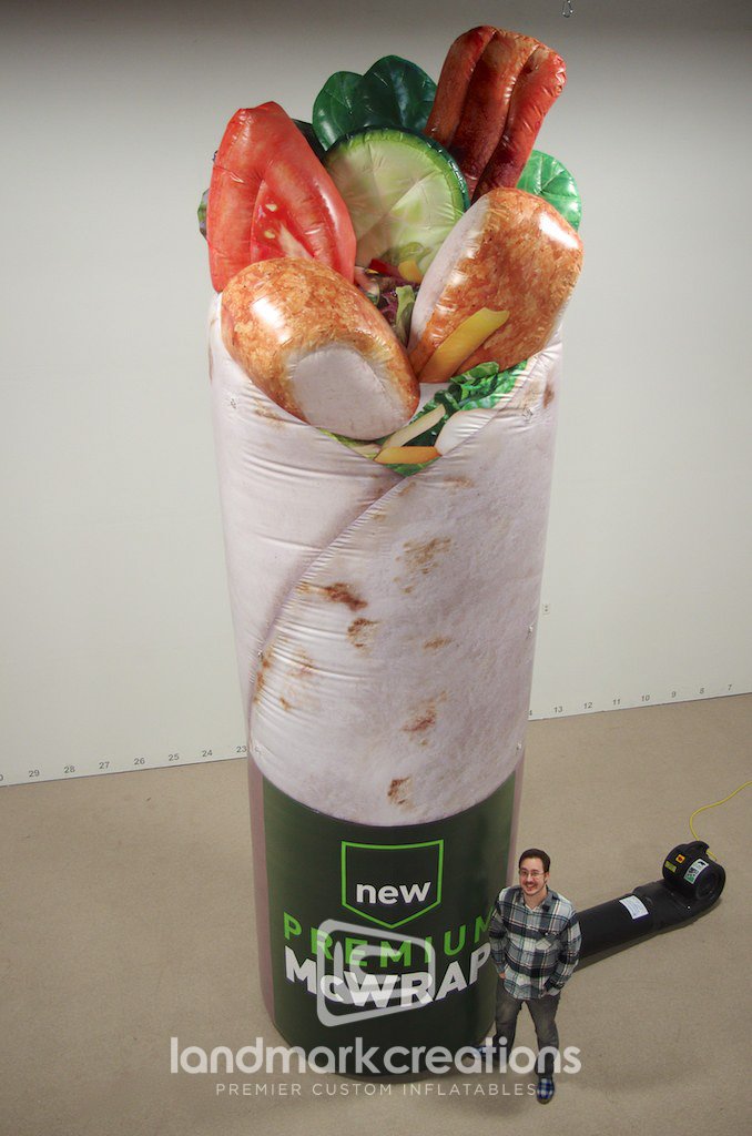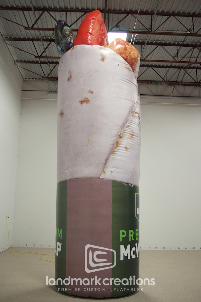 To advertise the launch of the new Premium McWrap from McDonald's this giant inflatable replica was displayed at restaurant locations. The giant inflatable helped broadcast the new hand-held package designed for eating on-the-go while also sparking interest in new wrap flavors!