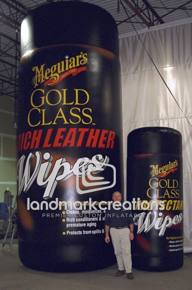 A giant replica of Meguiar's Gold Class Wipes, this inflatable display boosts product awareness. Its realistic details make it ideal for trade shows and experiential marketing.