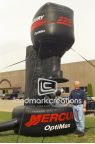 Mercury Marine used their inflatable boat motor replica to announce the launch of the OptiMax motor at boat shows and fishing events.