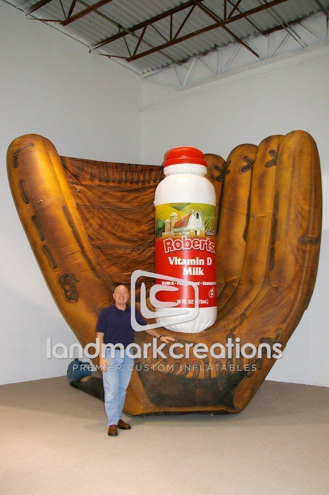 Roberts Dairy Foods, a sponsor of the Iowa Cubs, uses their inflatable Vitamin D Milk bottle placed inside of a giant baseball glove to promote their product at home games!