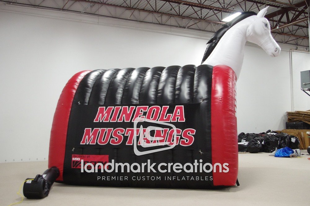 MSG Varsity, a television network focused on youth sports in the New York metropolitan area, presented Mineola High School with this customized inflatable football tunnel after winning the Home Field Advantage Contest!