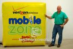 “We wanted to convey our 'money-saving' message; what better way than a 14-foot-tall inflatable booth with money flying around in it?”