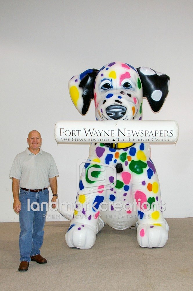 This charming and colorful inflatable dalmatian is used to stimulate interest in the Fort Wayne Newspaper.