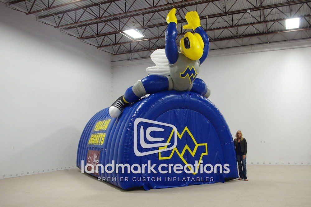 First Service Bank excited yellow jacket fans and athletes by purchasing this custom inflatable football tunnel for the high school football team.