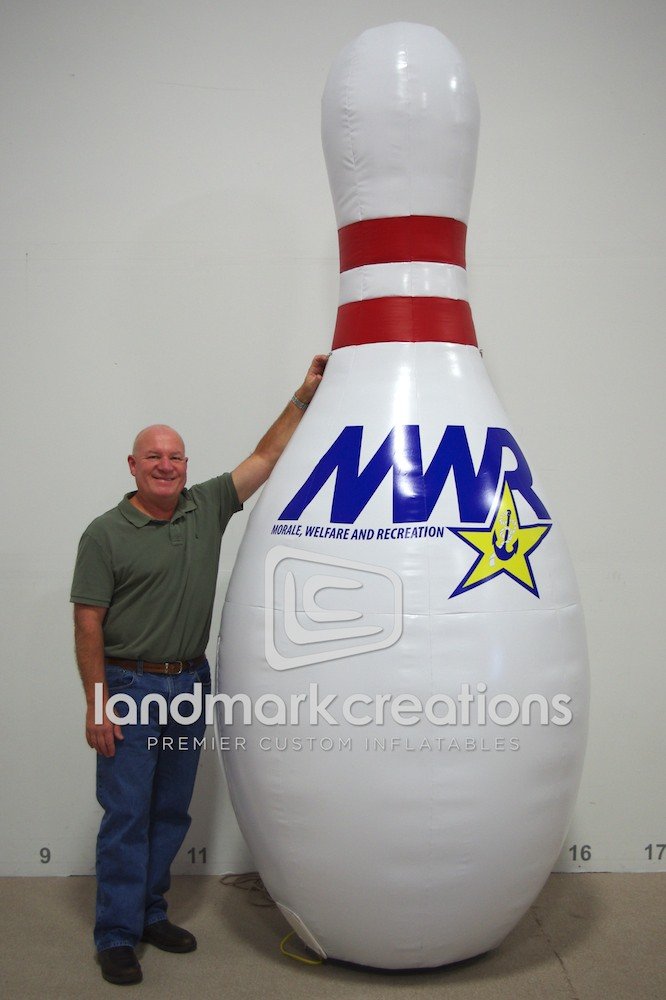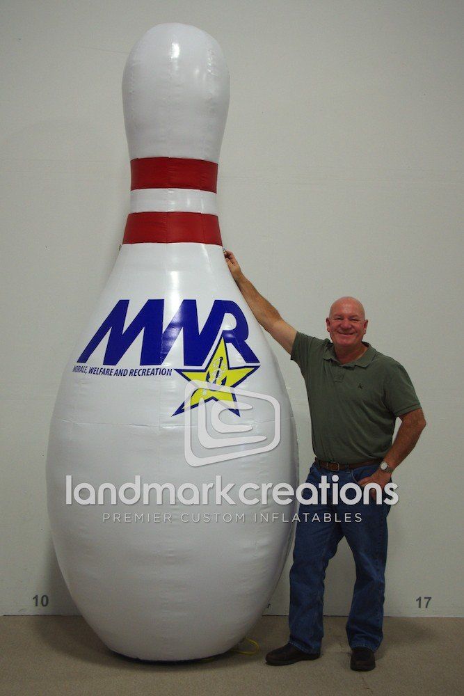 The U.S. Army morale, welfare, and recreation programs use their inflatable bowling pin to direct soldiers and their families to bowling centers for casual recreation activities and Professional Bowling Association tournaments.